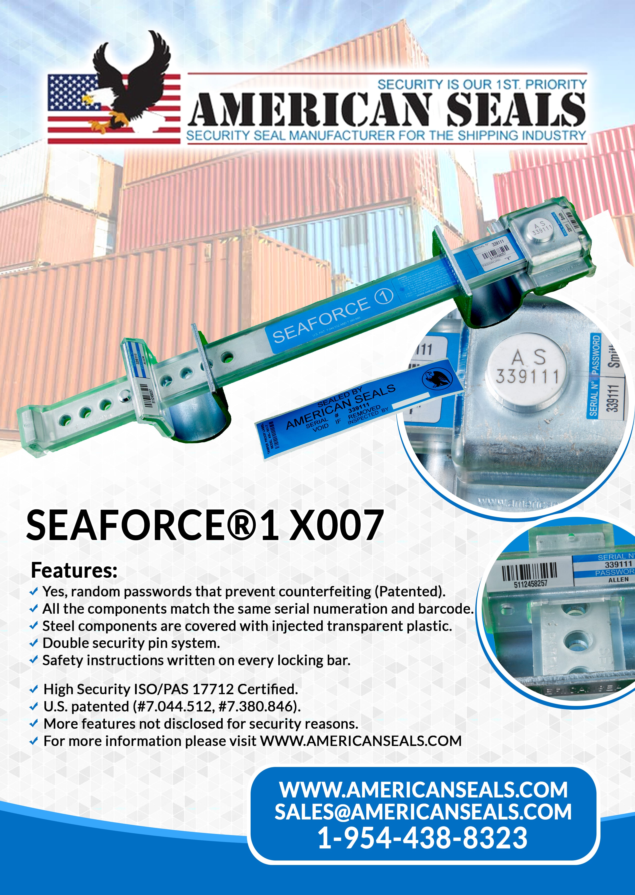 – Another important advantage is that the Seaforce® 1 model X-007, is made of steel but is also covered by a clear injected plastic that works like a protector Shield, leaving a huge tamper evidence if the Seaforce 1 is drilled, grinded, sawed. welded, painted, etc. by the dishonest people to pretend to steal your container/trailer without leaving evidence.