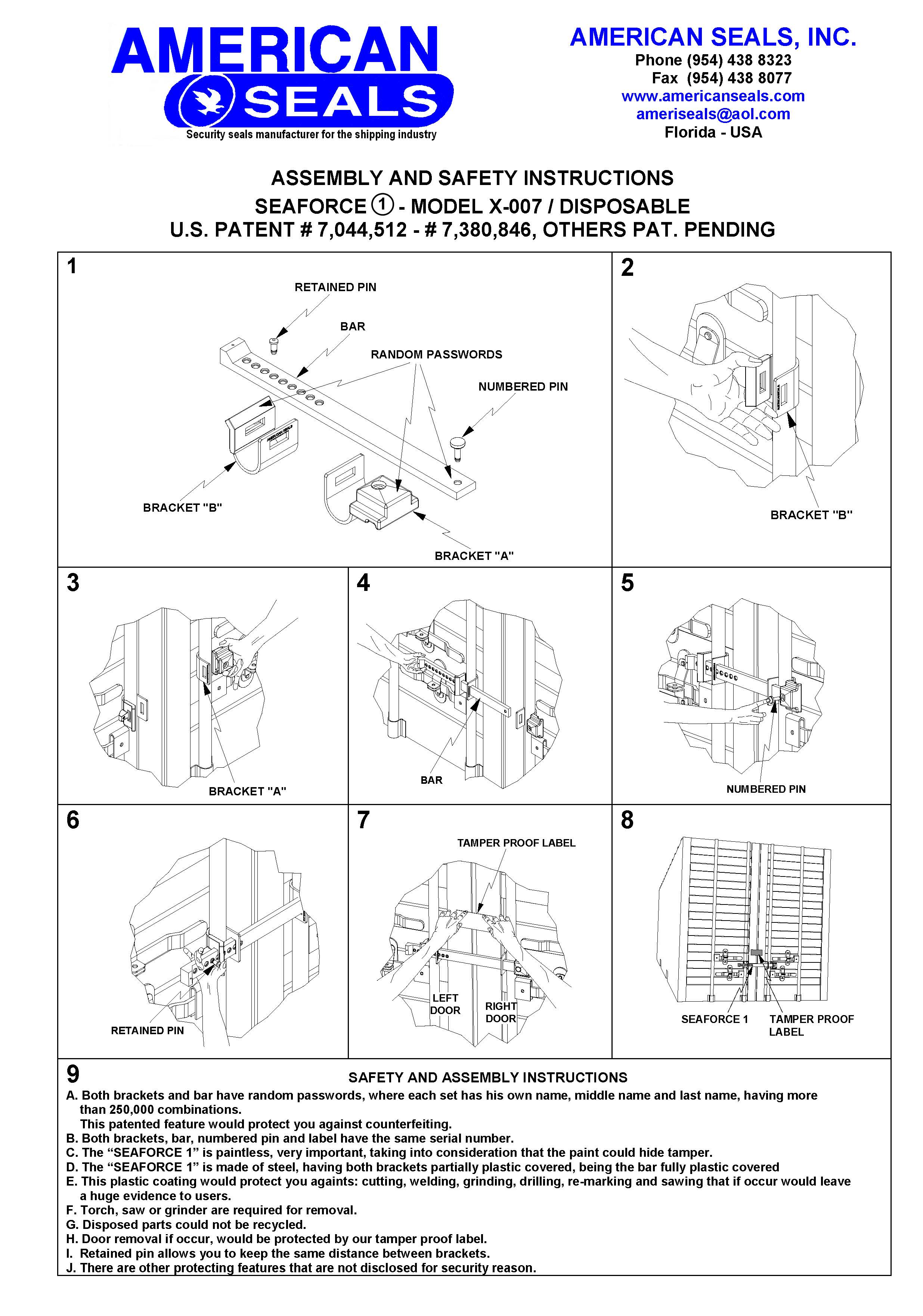– The Seaforce® 1, model X-007, comes with the same serial number on all the components in order to prevent counterfeiting and partial replacement. This feature is protected under U.S. Patent number 7,044.512