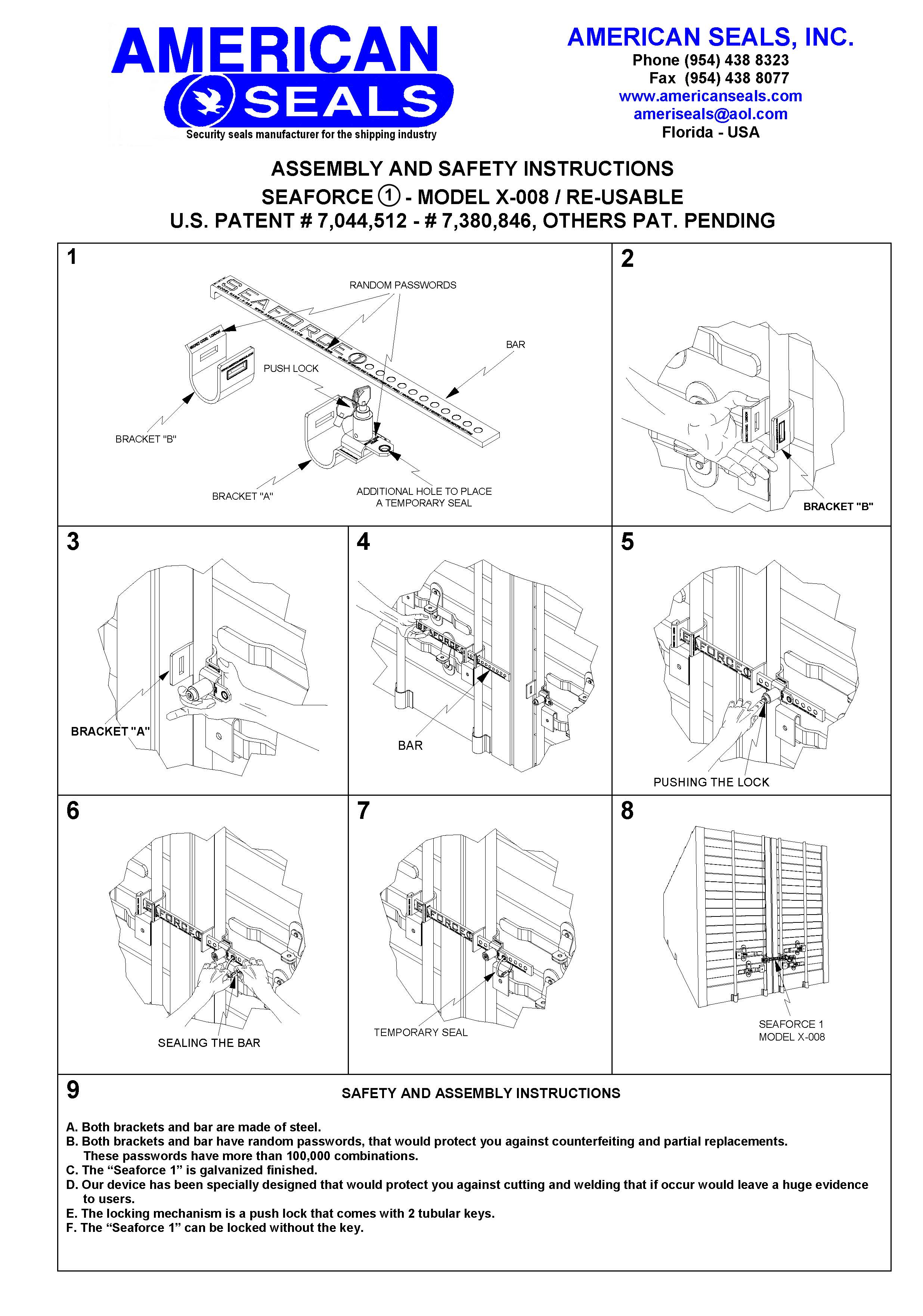 -The Seaforce® 1, model X-008, can work like a re-usable bar or like a seal, keeping always the X-008 ready to be re-used again and again, the point is just to remove the temporary seal that has been placed before. This exclusive feature is protected under U.S. Patent number 8,056.945.